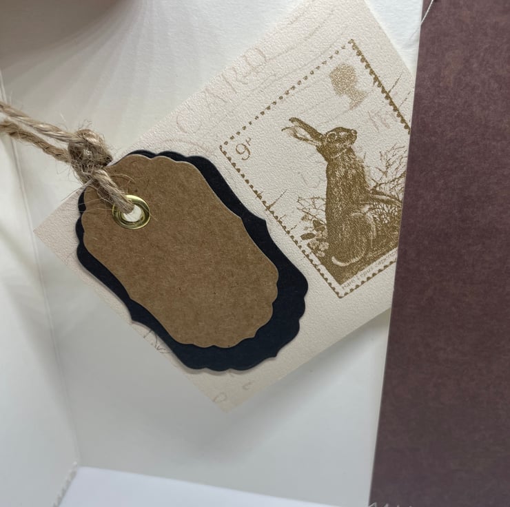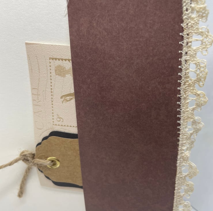 This unique beauty has a hide surprise inside. It is a hand decorated card topper sewn on to the blank card stock, with cotton lace trim. Ideal for holding gift cards or money with an inside pocket too. Ideal all rounder for all occasions too.