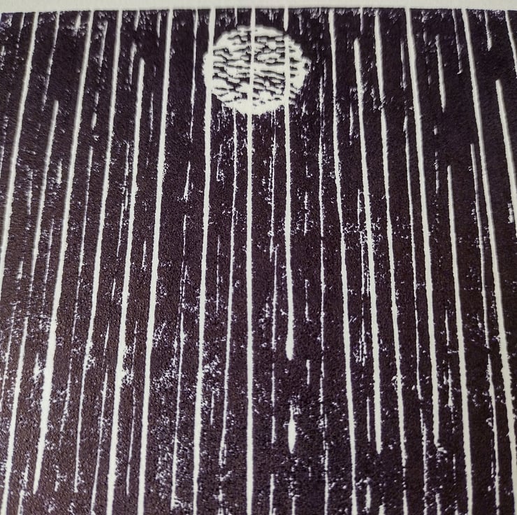 High quality Relief Ink in Carbazole Violet (a very dark purple that looks almost black). Handprinted on 250gsm smooth fine art archival paper in Warm White.
