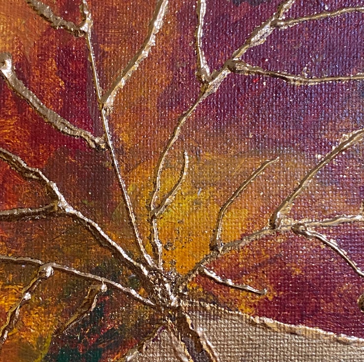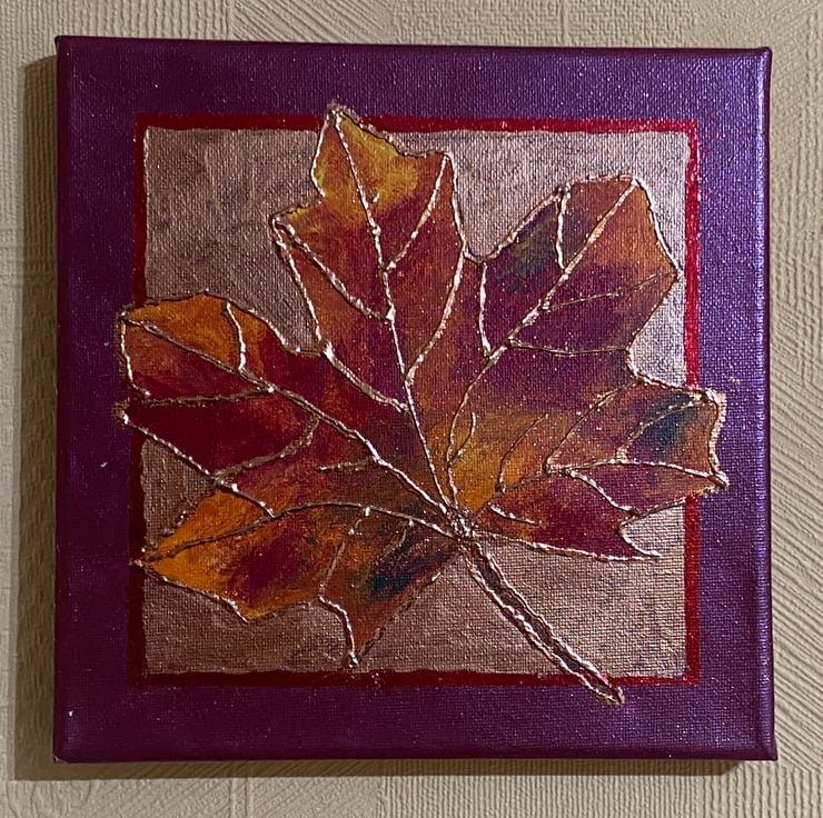 I modelled this painting on a real maple leaf on canvas. The leaf veins have been gilded in gold foil and the border gilded in red. It measures 20cm square and is unmounted. Thank you for looking. Postage is via Royal Mail 2nd class.