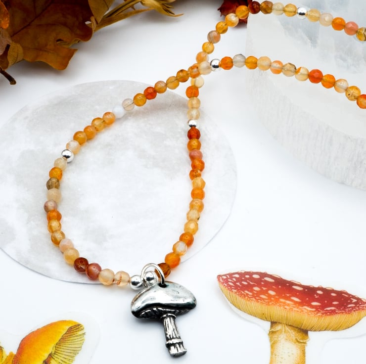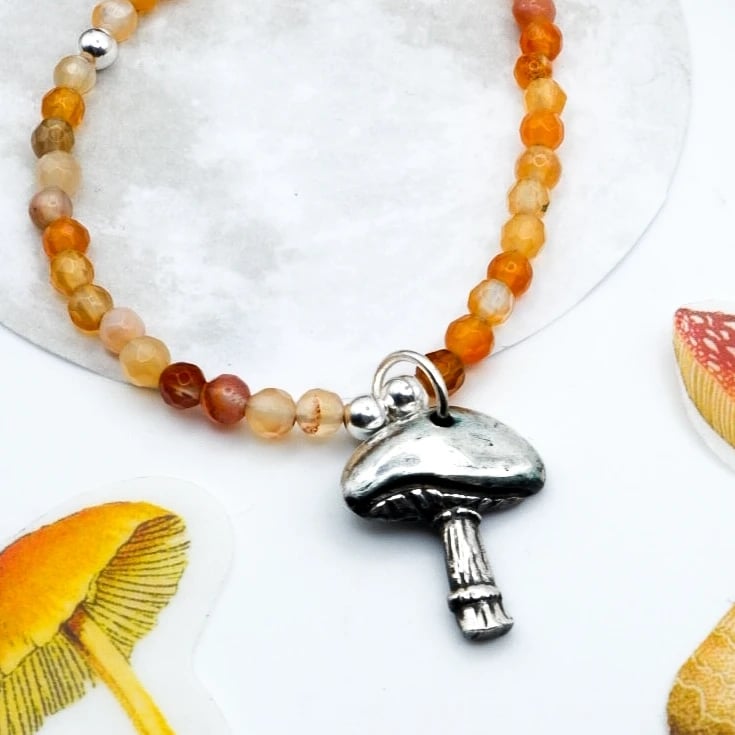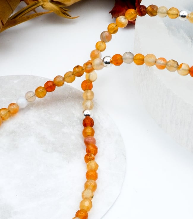 Handmade with lots of love in the East Midlands using recycled solid fine silver, sterling silver components including round accent beads, and genuine Carnelian gemstone faceted beads.