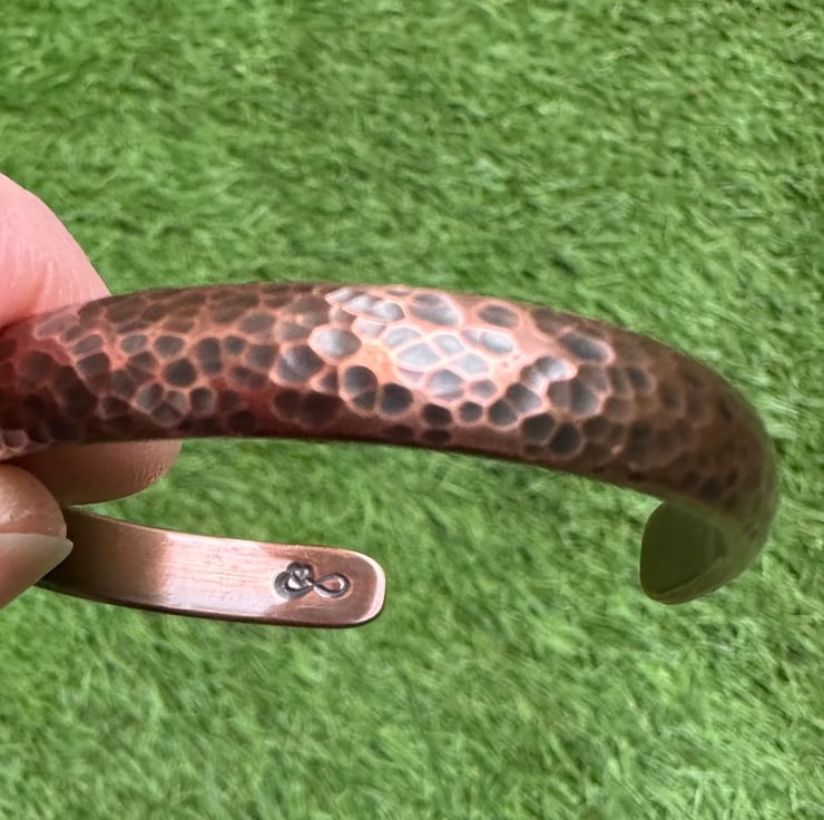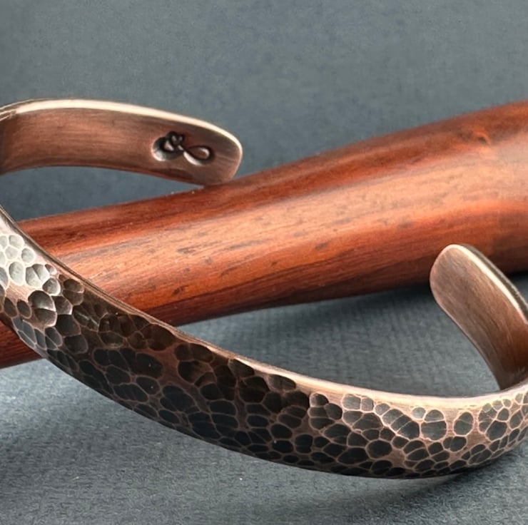 Infinity copper bracelet - hand forged, hand hammered, made with D-shape pure, natural, 100% copper strip which is oxidized to achieve this beautiful, antique finish