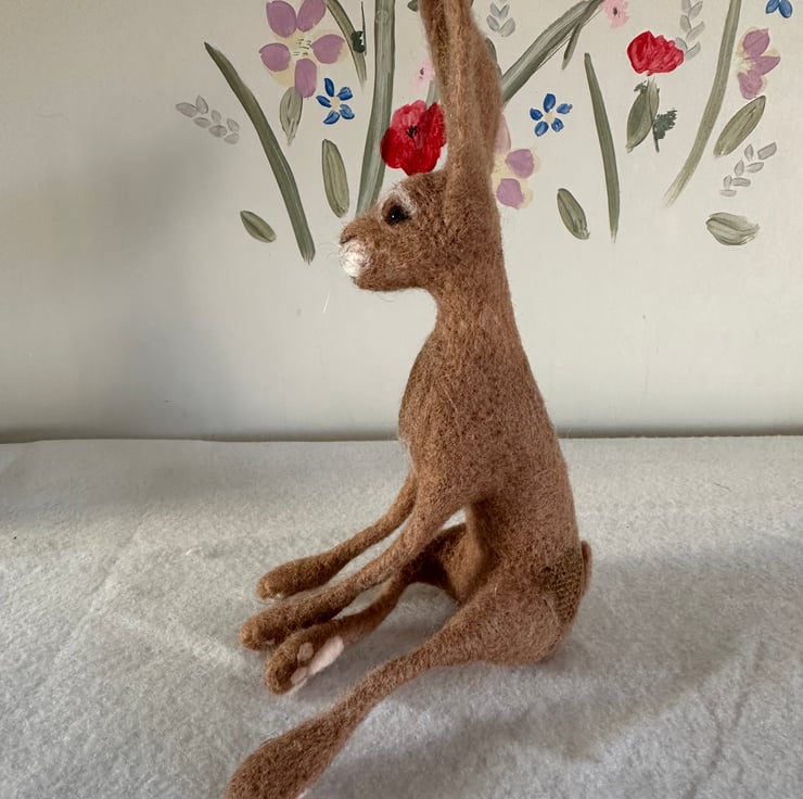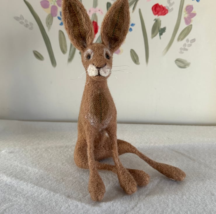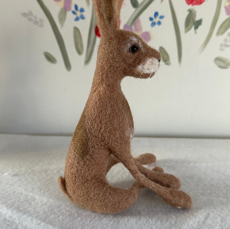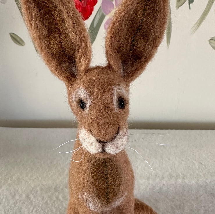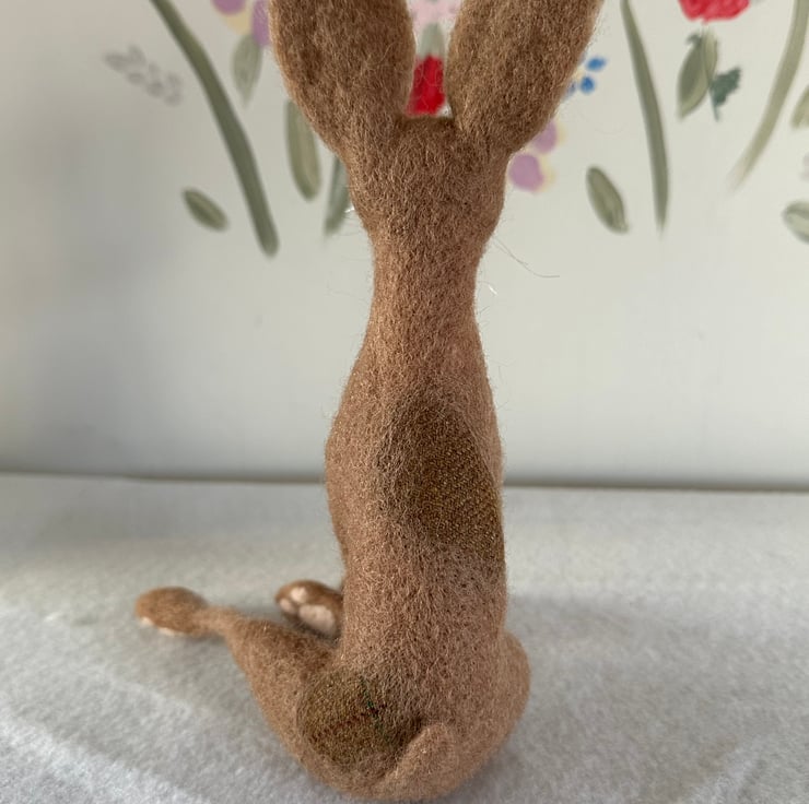 Needle felted in wool with bead eyes and wool tweed detailing.