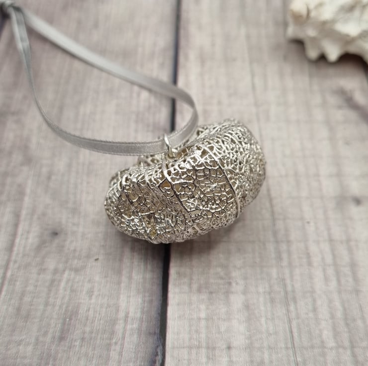 All the items in my shop are made by coating real pieces of nature in silver using the process of electroforming. As the original item remains encased inside the silver no two pieces are ever the same, your item is truly unique!