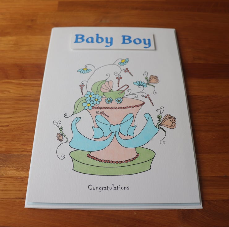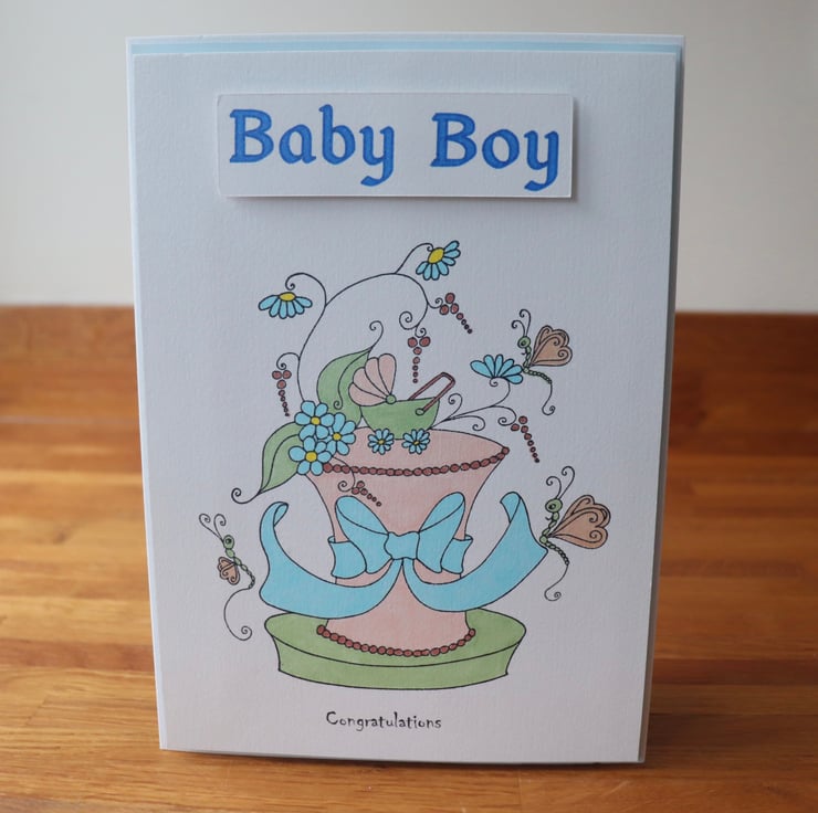 The sentiments on the front are Baby Boy in Blue and Congratulations.