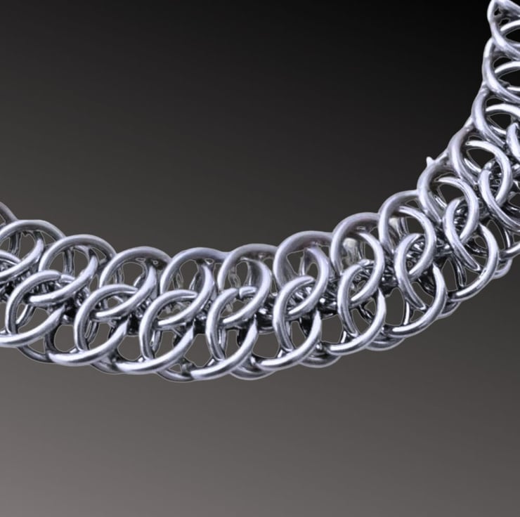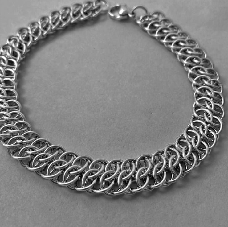 This weave is called the Great Southern Gathering or GSG and is created using 18 gauge Stainless Steel rings with a 4.8mm inner diameter. This chain is a flat weave that can be worn at any length its lays nicely on the skin.