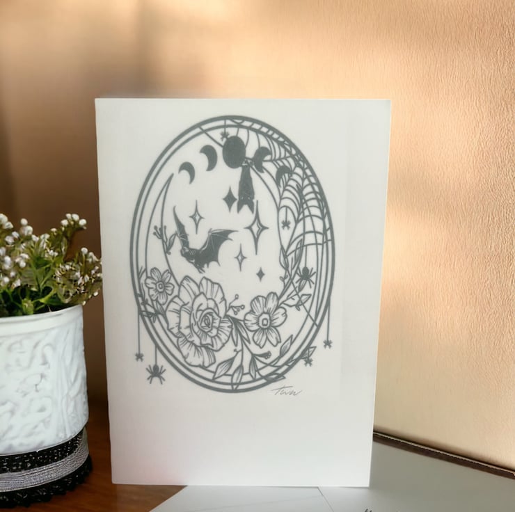 Each design is individually cut, printed and heat transferred onto card one at a time. Meaning all cards are perfectly imperfect and one of a kind.