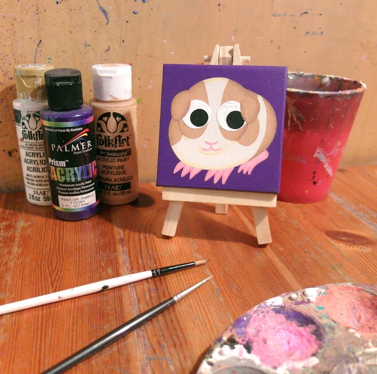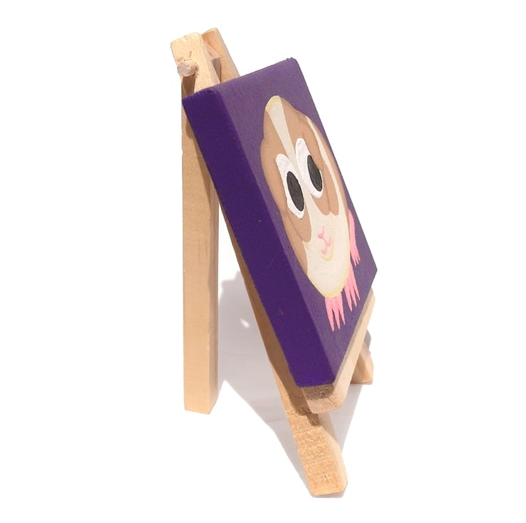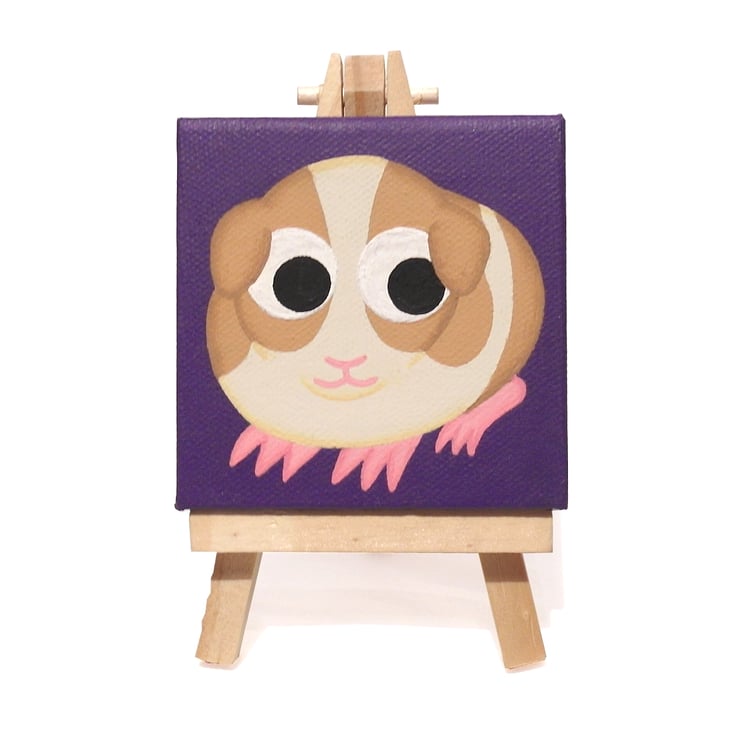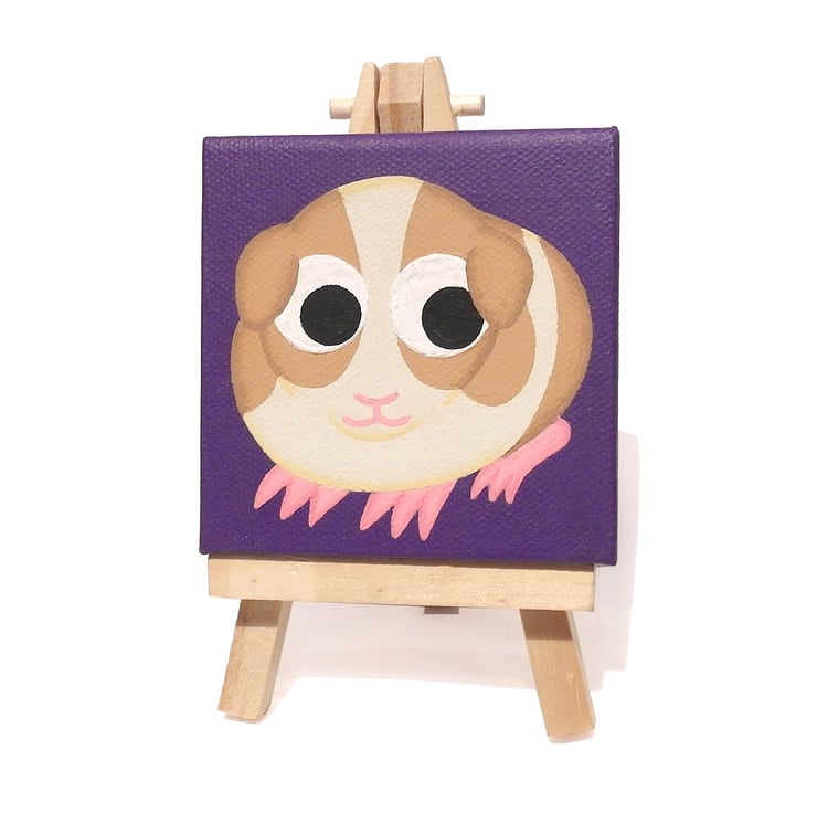 Guinea Pig Miniature Acrylic Painting - cute pet art on mini purple canvas