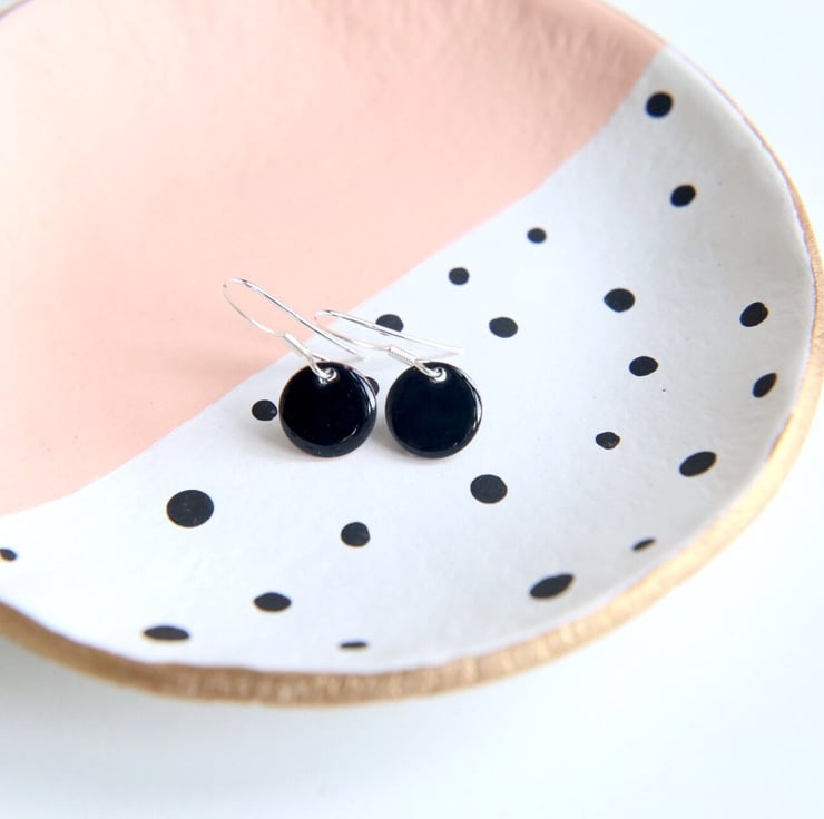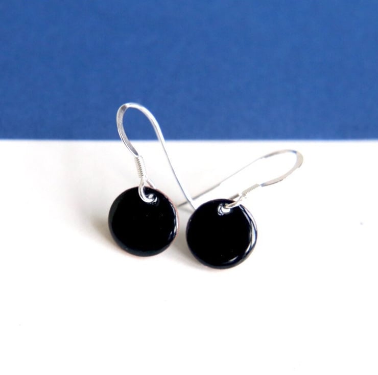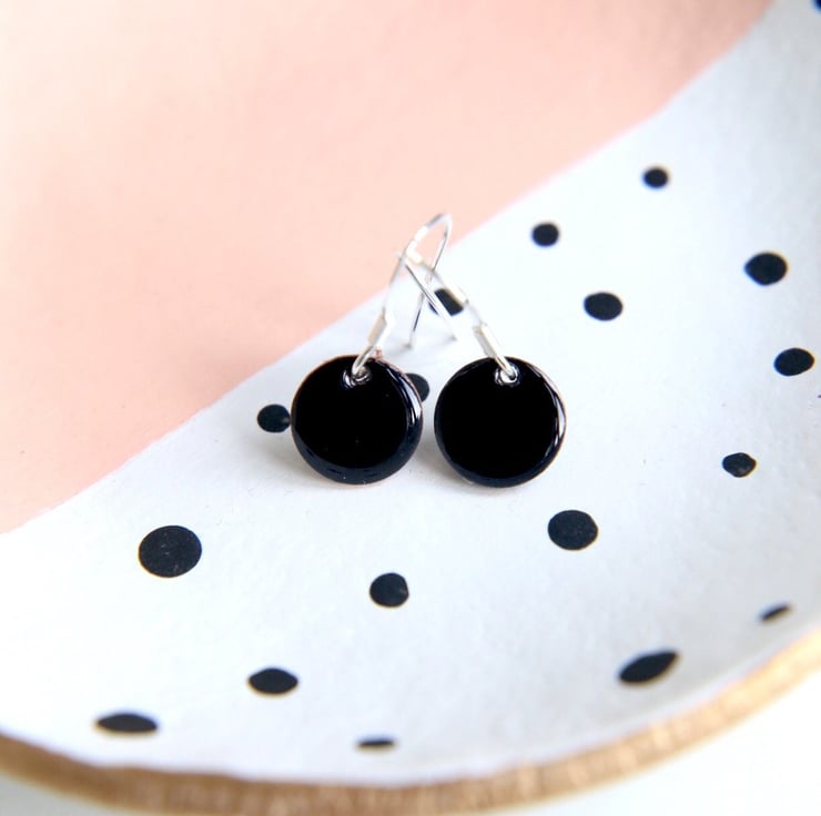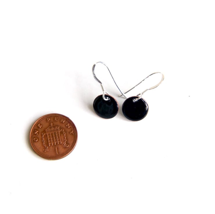 Gorgeous little black earrings made from enamel on copper. These earrings would match perfectly with a little black dress or smart work outfit.