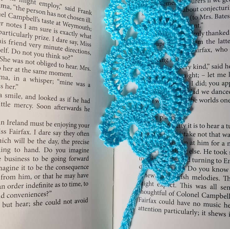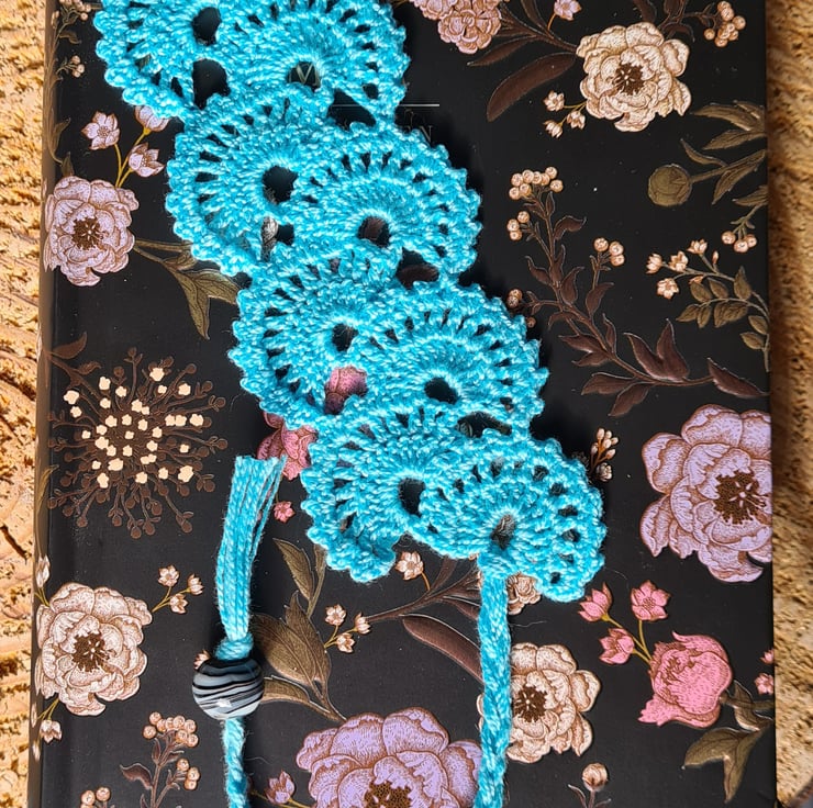Elegant lacy crochet bookmark, crocheted using 100% mercerised cotton and finished with a bead from upcycled jewellery.