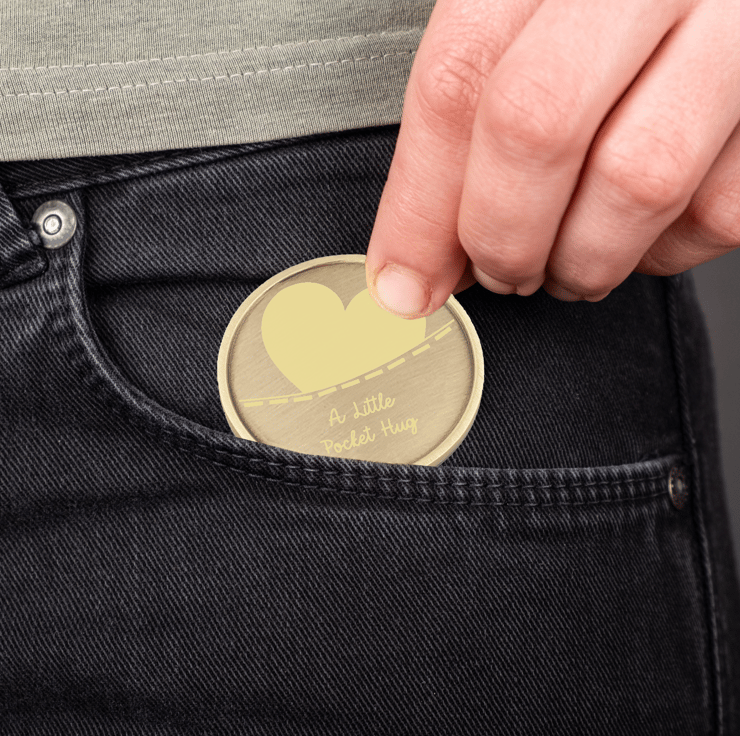 A long distance connection that will always be there. A metal pocket hug able to carry it with you everywhere. Great for Valentines, Anniversaries, or Birthdays! Always be there where ever your love one is. You only receive 1 coin.
