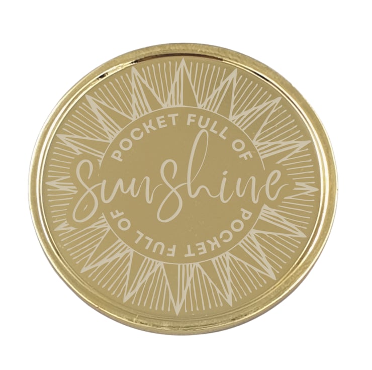 Carry a little sunshine with you wherever you go with our "Pocket Full of Sunshine" Engraved Metal Coin. This adorable and thoughtful gift is available in a range of different metals, adding a touch of warmth to your pocket.