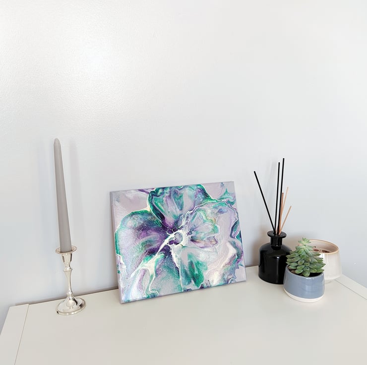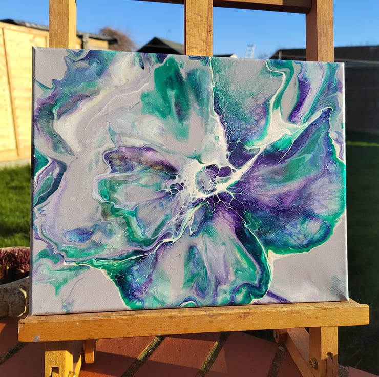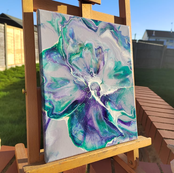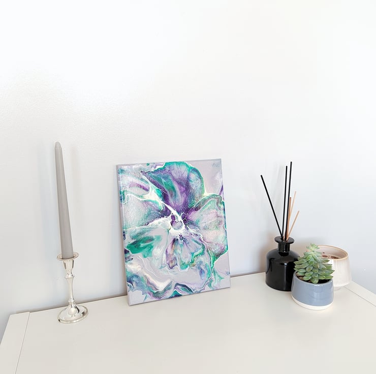Original 24x30cm Lavender Acrylic Abstract Flower Acrylic Painting Fluid Art - Wall Art, Perfect for Home or Office Decor.