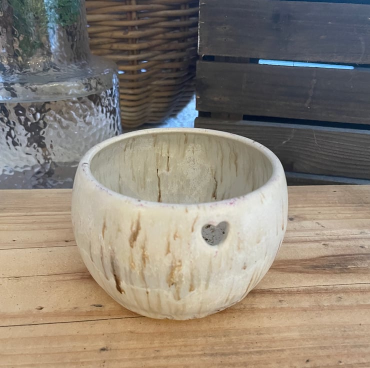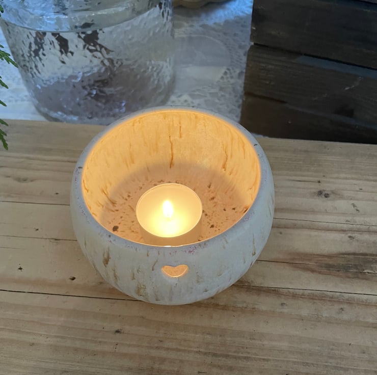 A lovely tea light holder with small cutout heart design.
