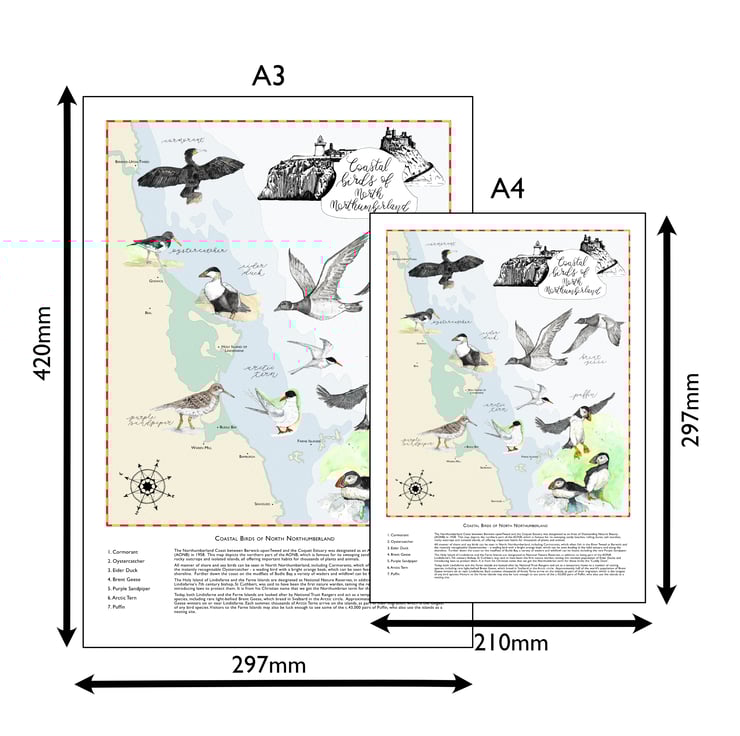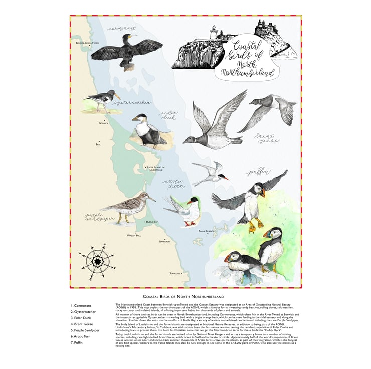 Bring some of the beauty of the North Northumberland coast into your home through this eco-friendly A3-sized illustrated map print. Featuring watercolour and pen illustrations of coastal birds like Puffins, Arctic Terns, and Cormorants, it’s the perfect gift for nature lovers or an inspiring addition to your own home decor.