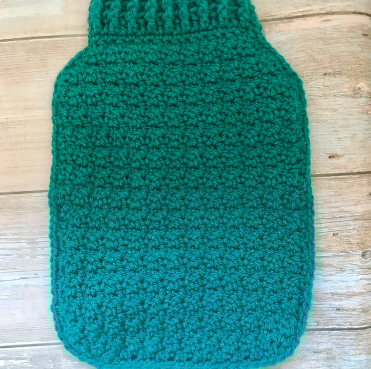 Beautiful teal green chunky hot water bottle cover with pink flower motif. Made with 100% premium quality vegan friendly yarn. Hot water bottle not included. Fits standard size hot water bottle.