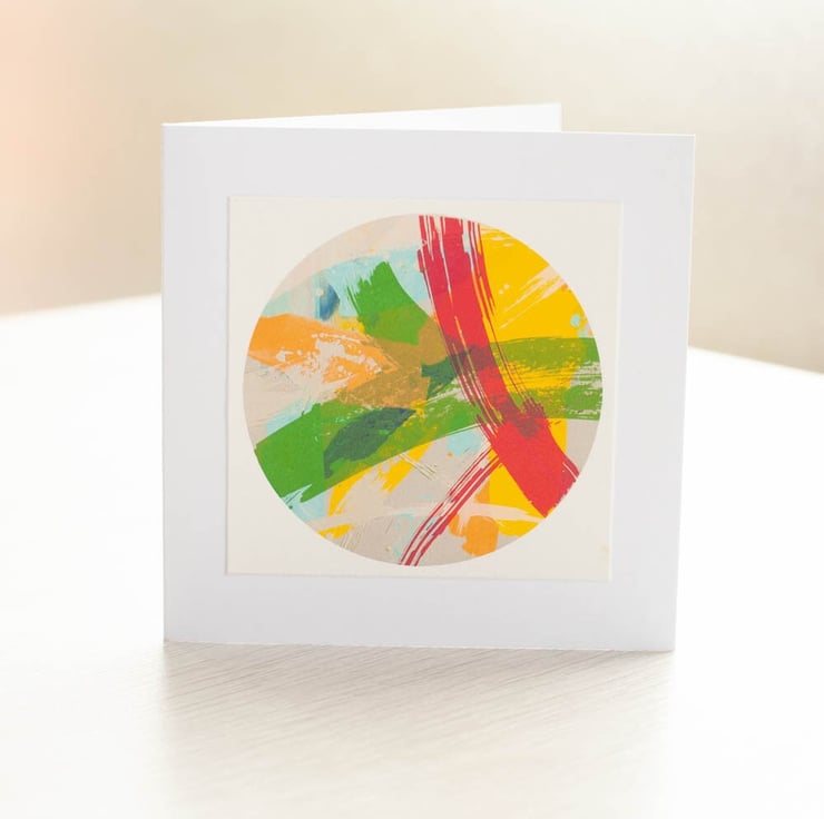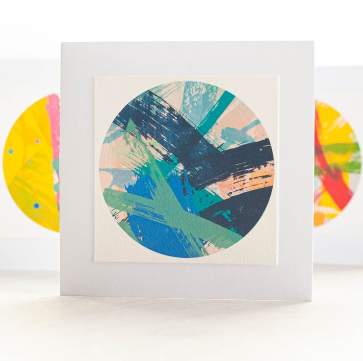 I'm an artist printmaker with a love of colour and abstract and geometric design. All of my cards are reproductions of my original prints. The circle splash designs are all unique screenprints.