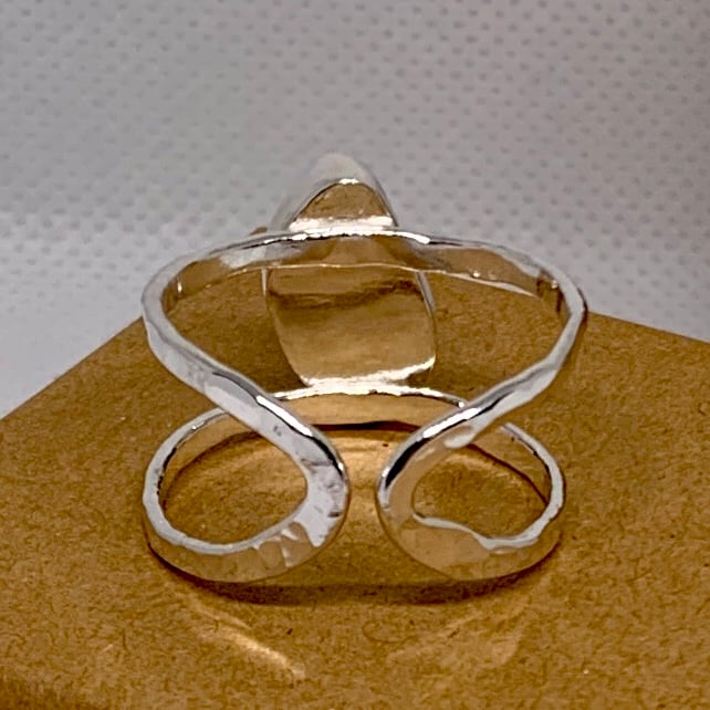 The ring band has been made using 1.5mm round sterling silver wire which has been hammer textured