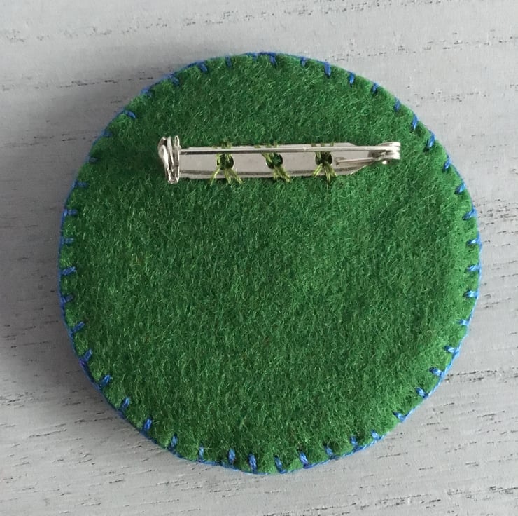 This brooch is approximately 2.50 inches (6 cms)….a nice wearable size. A brooch pin is sewn on the back, it has a safety catch for secure wear.