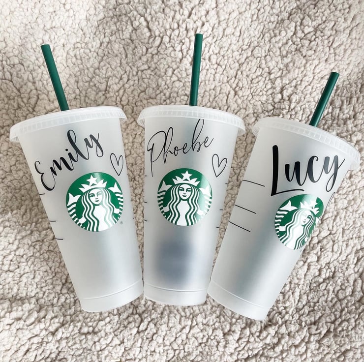 Personalised 24oz Starbucks cold cup. This item is handmade and made from vinyl. See picture two for cup care and message for bundle discounts and more information.