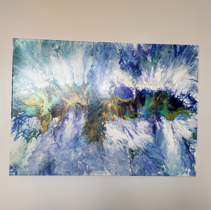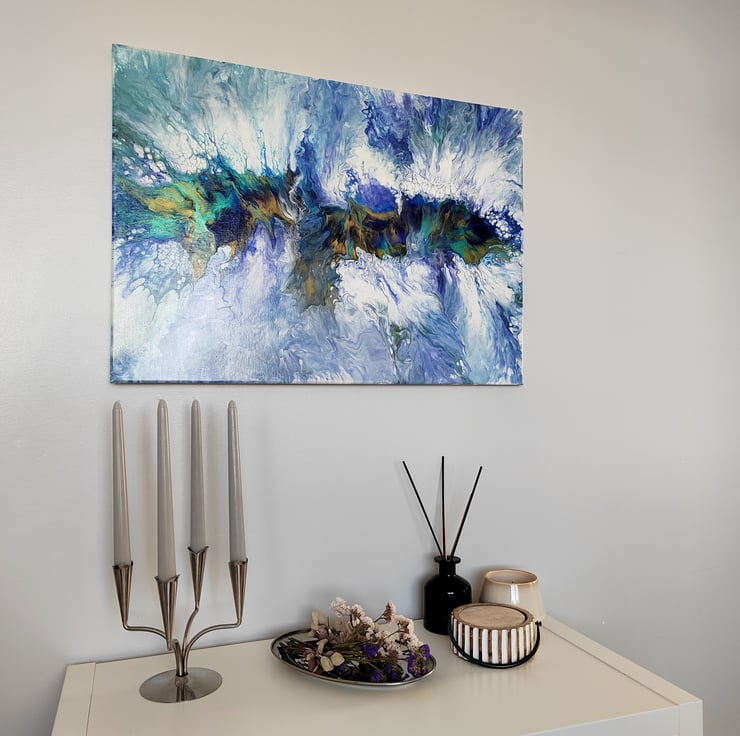 Original 50 x 70cm Blue and White Abstract Acrylic Painting Hand Poured - Unique Wall Art, Perfect for Home or Office Decor.