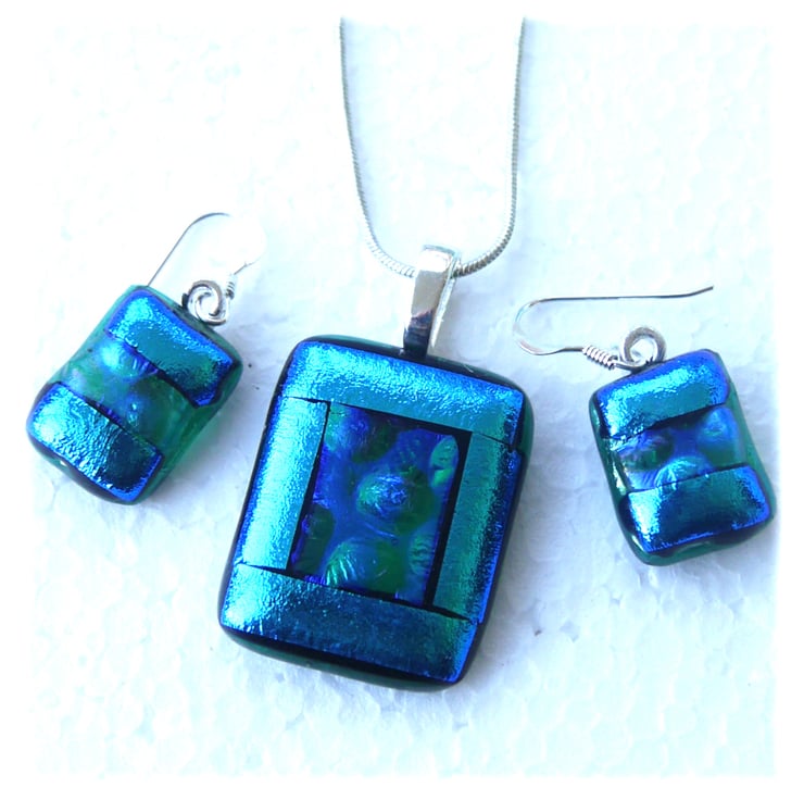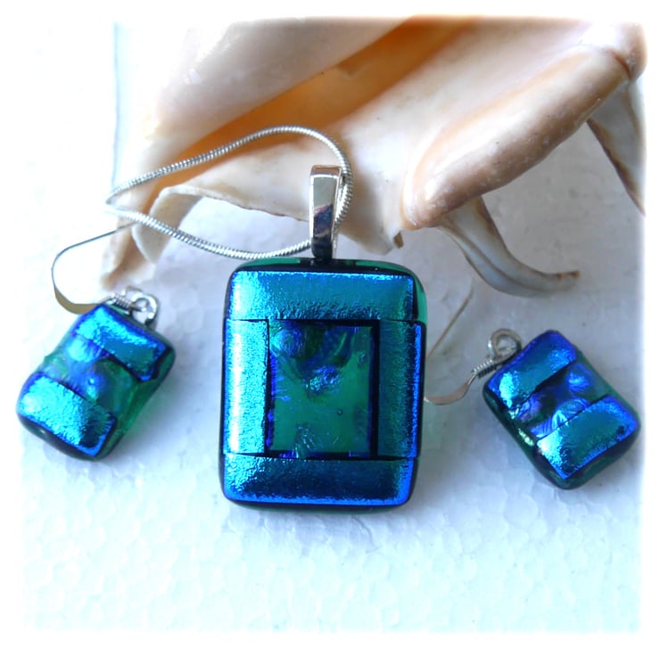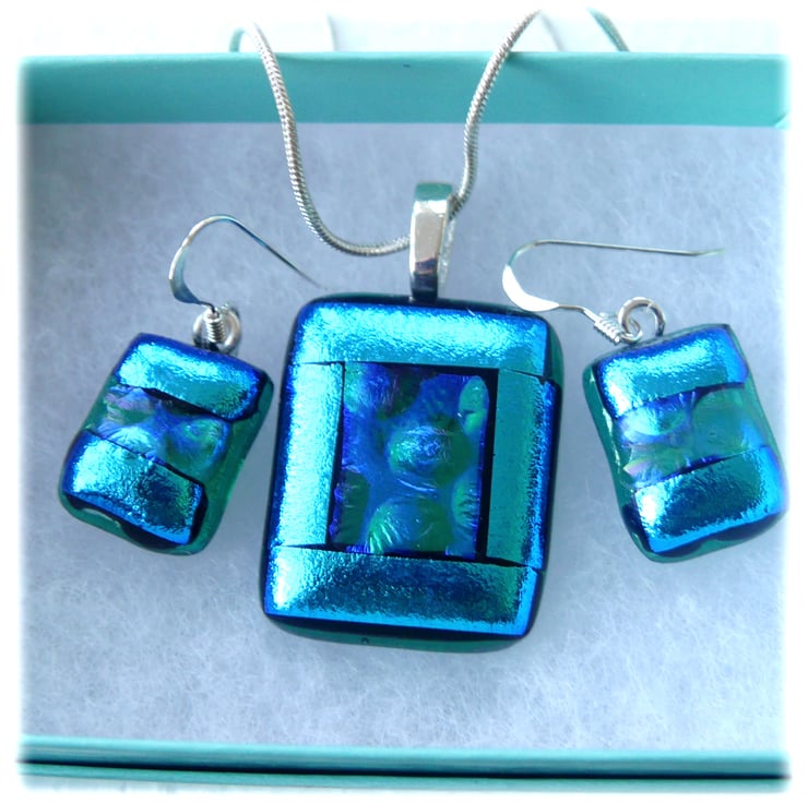 The dichroic glass cabochons for the pendant, matching earrings were handmade, by me with love.