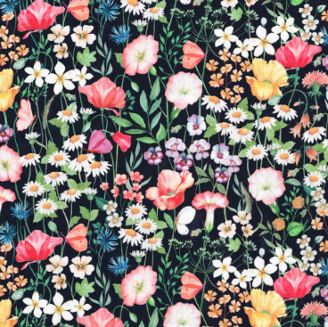I love colour and I am particularly drawn to the delicate prints you can find in Liberty Tana Lawn, a super light weight cotton. However, sometimes I find myself attracted to less colourful prints and I buy them and never use them. So the midnight series was born, little creatures in blacks and greys with dark prints that please me. Jude's Garden is a bright midnight Liberty lawn which is a joy to use xx