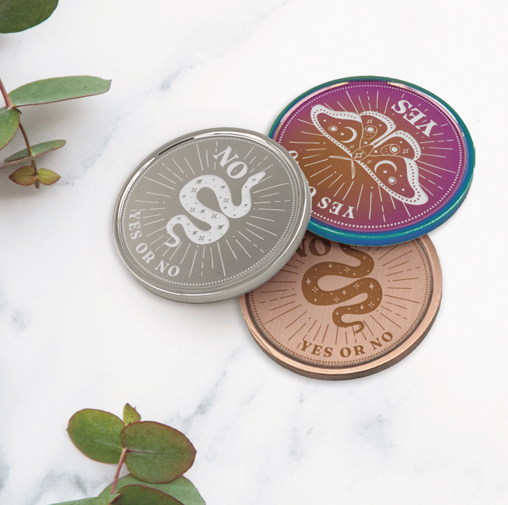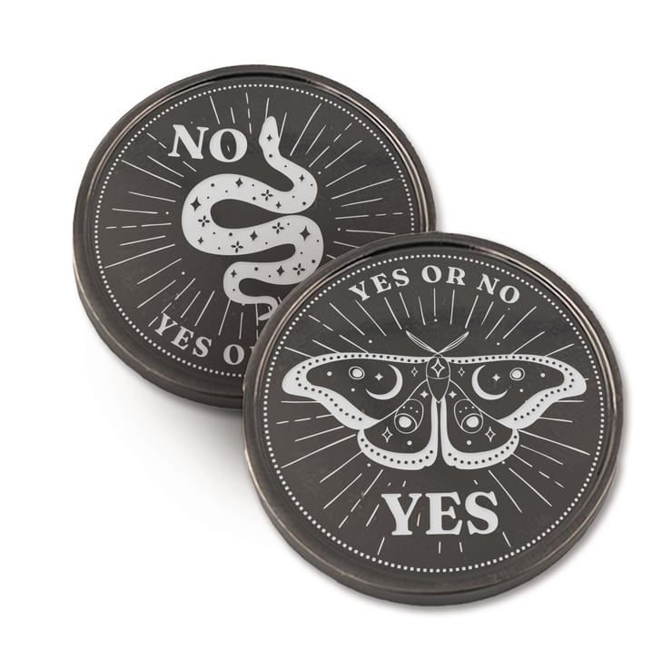 Our mystic decision-making coin adds an element of enchantment to your choices. Featuring a whimsical moth and snake design, this unique coin is perfect for making decisions in a playful and mystical way. Double-Sided Design: 'Yes' on one side and 'No' on the other—this coin is your trusty guide in moments of uncertainty.