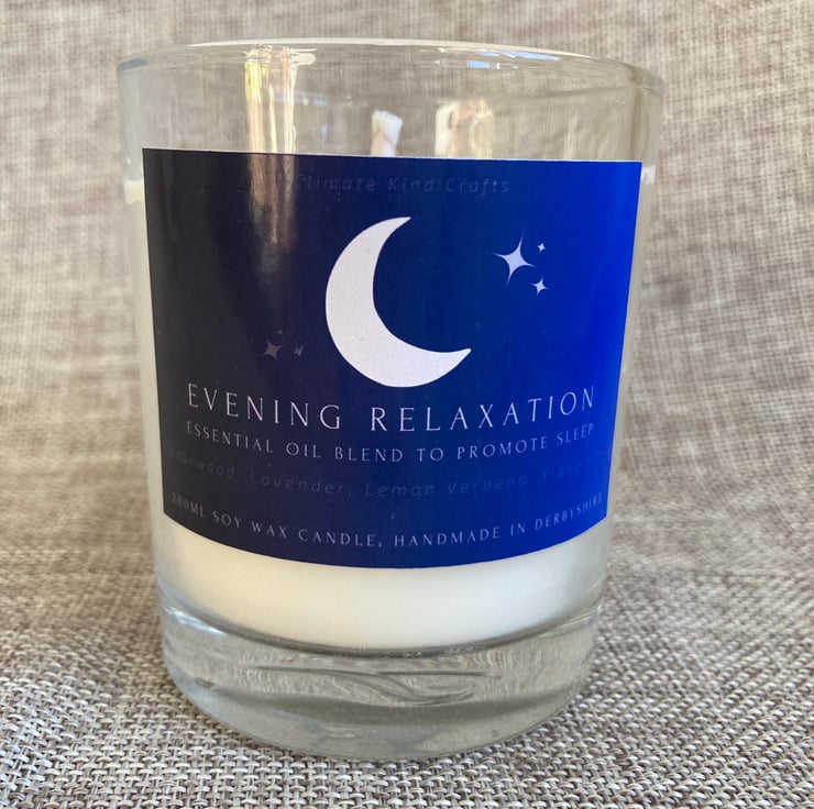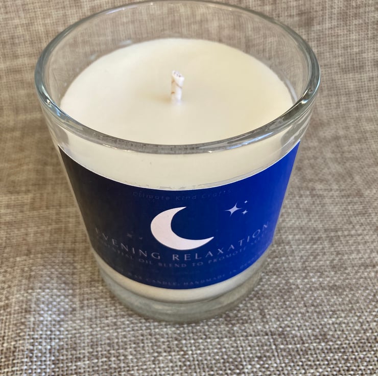 Let the Evening Relaxation candle's sleep-promoting essential oil blend relieve your stress, and soothe your mind and body.