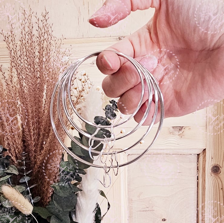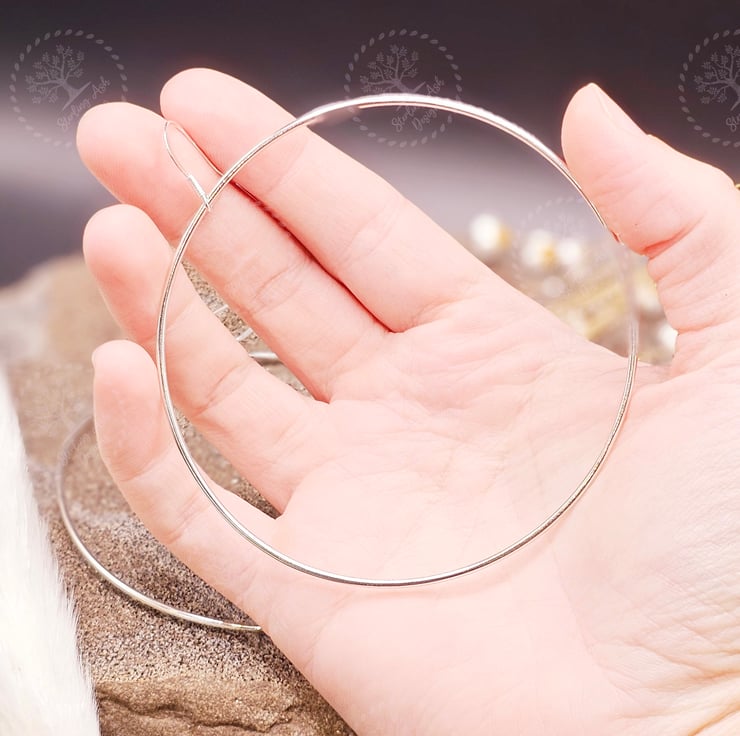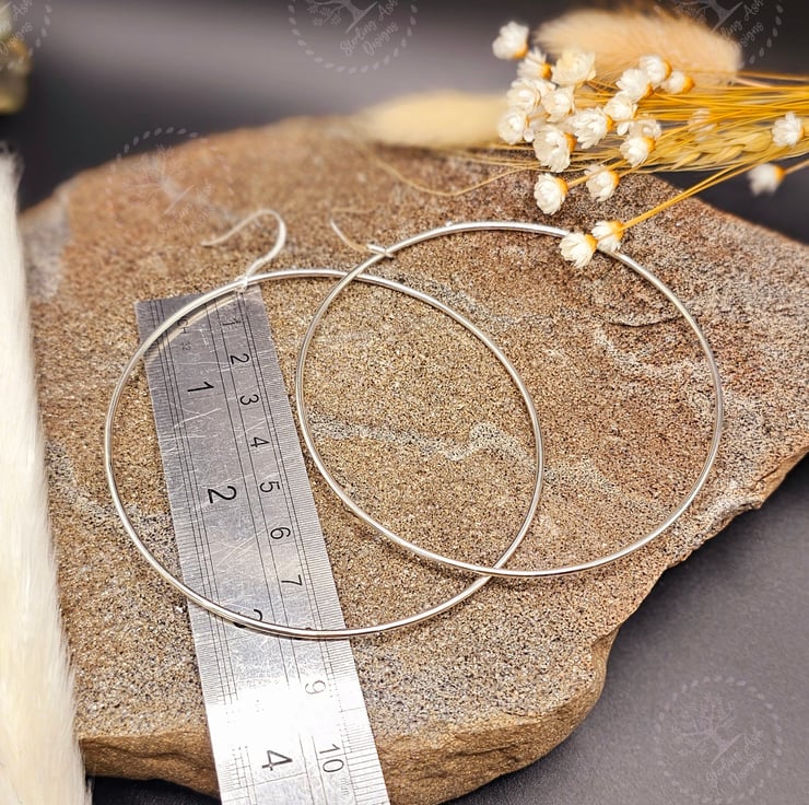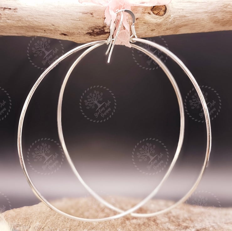 Recycled large sterling silver hook wire round drop hoop earrings with rubber backs.