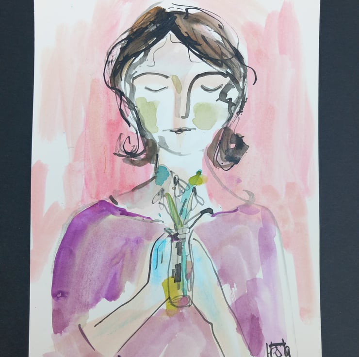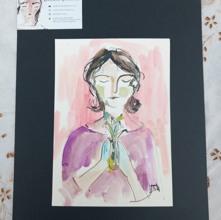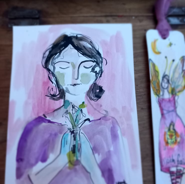One of original, using ink and reeds and a hint of collage. Calm, a5 unframed. Comes mindfully wrapped. She should make you feel still and content this January as you see the promise of snowdrops.