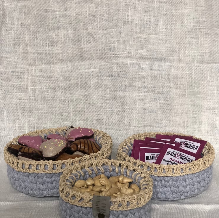 Depends on a size basket can be used for any kind of storage. Cookies, biscuits, tea bags, bread on a dining table. Cosmetic, jewellery, glasses, etc on a bedside table. Bits & bobs, tiny toys in a children’s room. Keys, letters many, many more…