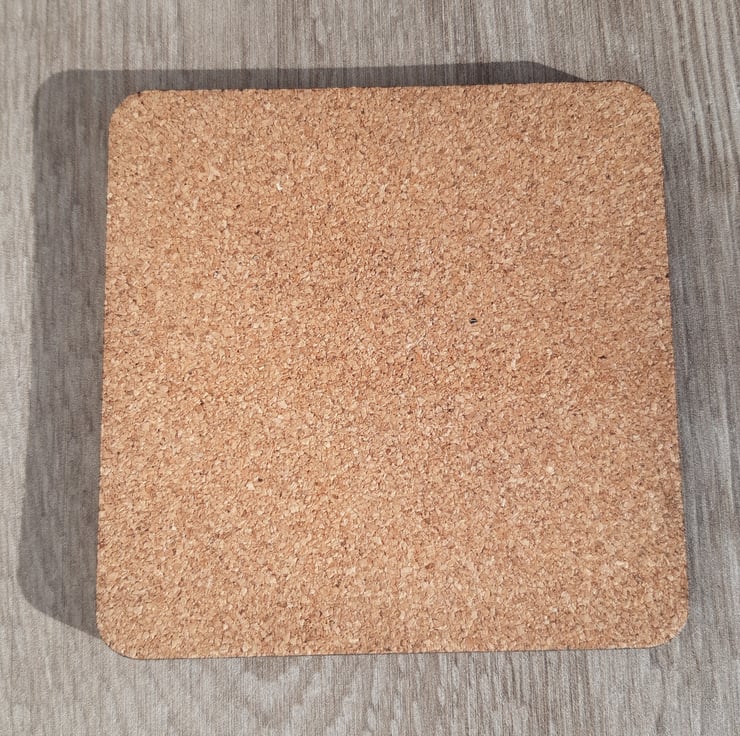 The coasters measure 9.5 cm x 9.5 cm and have a depth of 3mm. They are made of Mdf and have a glossy finish and a cork backing to protect your surfaces.