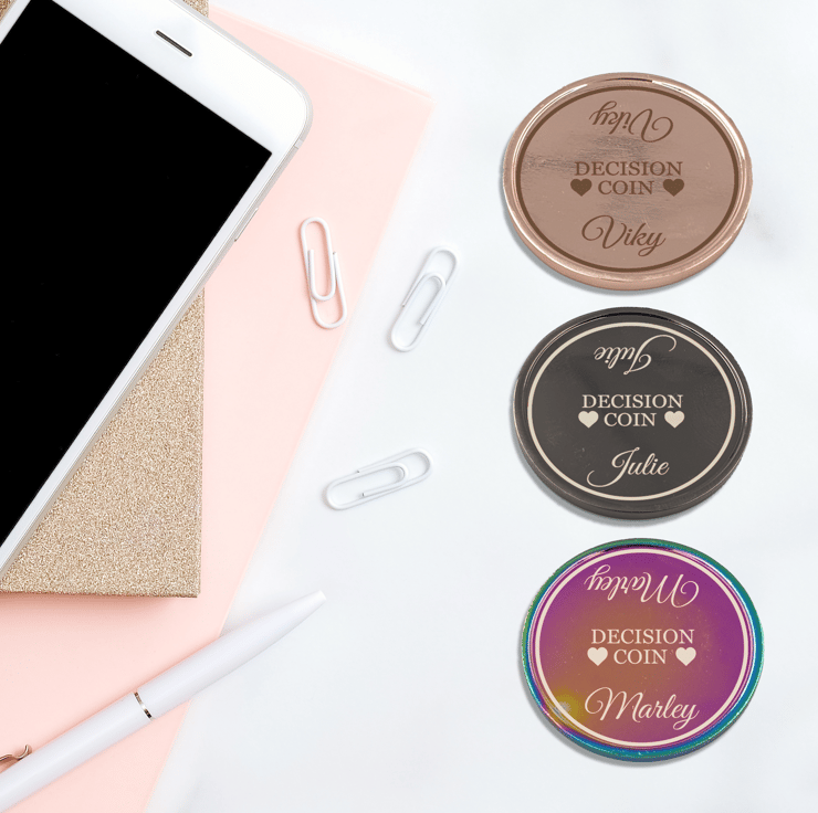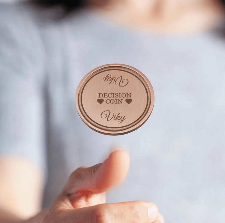A thoughtful gift this Valentine's Day to give to your partner. This metal coin unique and fun-filled way to make decisions within the household. Double-Sided Design: personalised with two names.