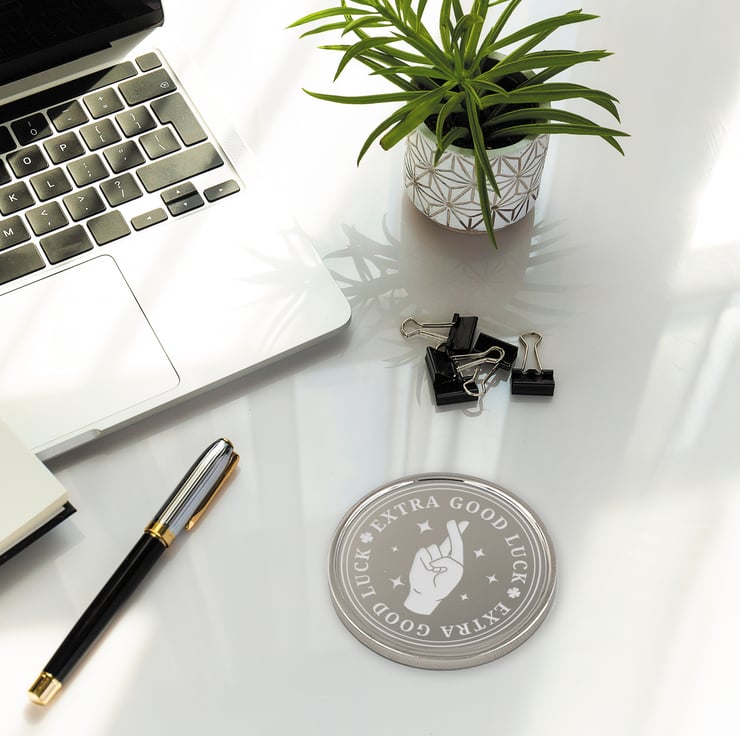Need an extra dose of good luck? Look no further than our "Extra Good Luck" engraved metal coin featuring a charming crossed fingers icon. This thoughtful coin is the perfect gift for anyone embarking on exams, starting a new job, or in need of a little extra luck.