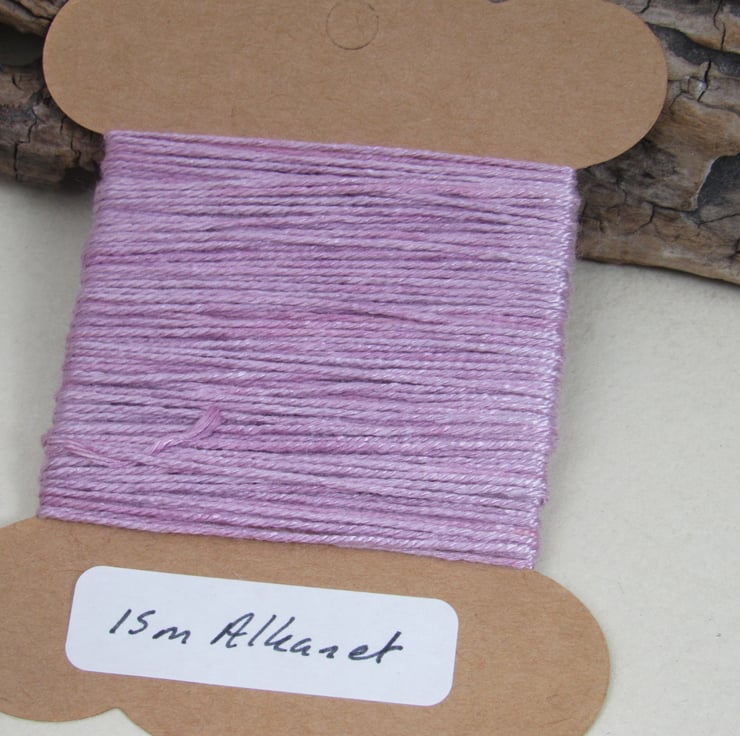 15m fine cotton perle embroidery thread, carefully hand-dyed with natural alkanet dyes to give a pretty pink - lilac thread with a tremendous sheen.