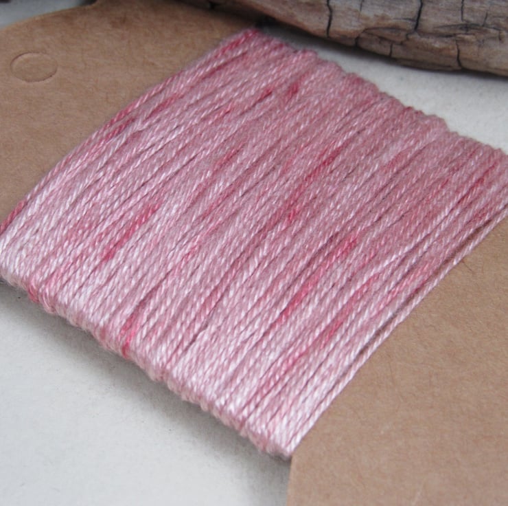 15m fine cotton perle embroidery thread, carefully hand-dyed with natural sappanwood dyes to give a light coral - pink thread with a tremendous sheen.