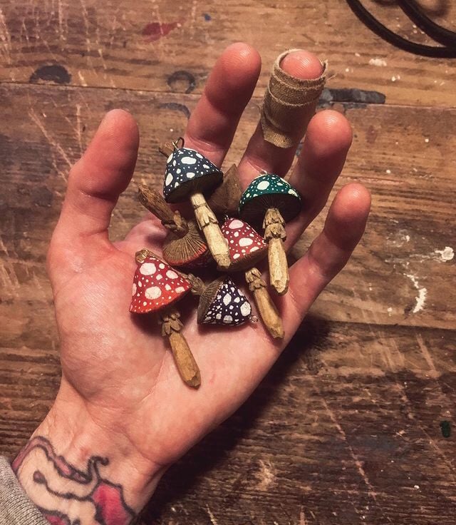 My custom carved mushrooms have a standard measurement of approximately 1.5” tall, but if you would like yours to be smaller please let me know - the smallest I am able to carve is 0.75”.