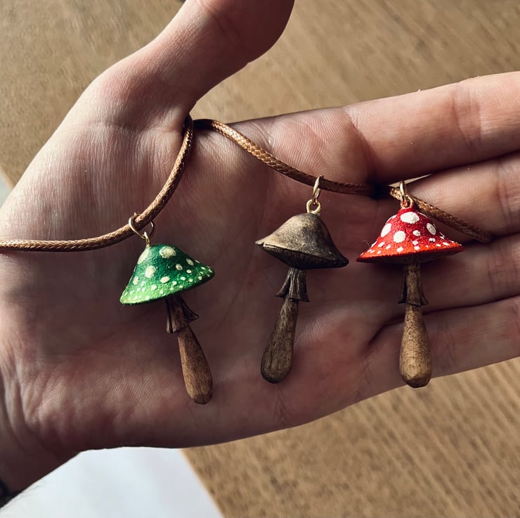 Please note this listing is for a custom mushroom pendant request - this is for 1 hand carved mushroom pendant on a wax cord necklace. Photo’s are of some of my previously carved mushrooms for reference.
