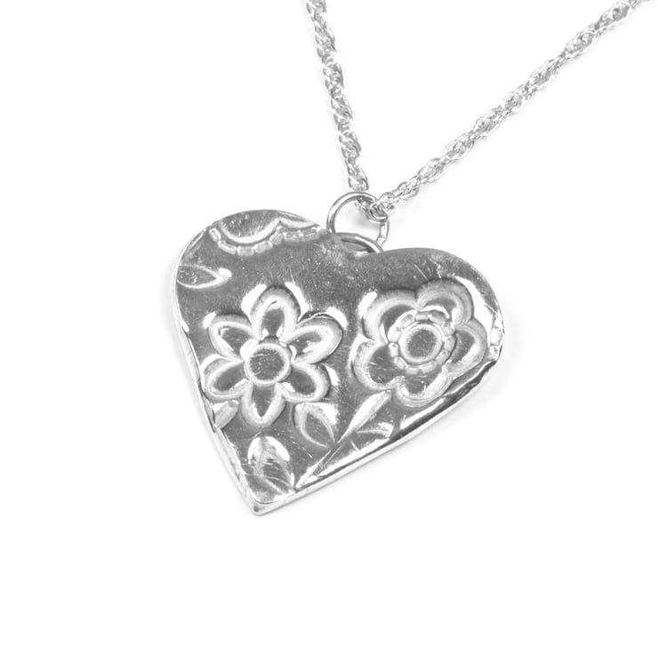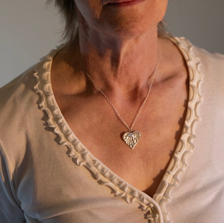 Inspired by True Love this unusual Heart Necklace is made from fine silver clay and Hallmarked 999, the material itself allows you to stamp designs into the silver clay before firing.