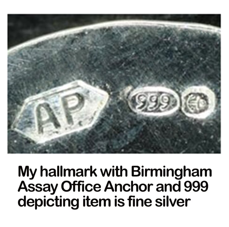 This flower impressed heart is one of the last items I have made from Fine Silver or as its also known Silver Clay. The silver particles are contained in a material that looks and acts like clay which you can then shape, stamp or roll just like clay. It is then fired and the binder dissappears leaving only the Fine silver particles, it can then be Hallmarked 999.