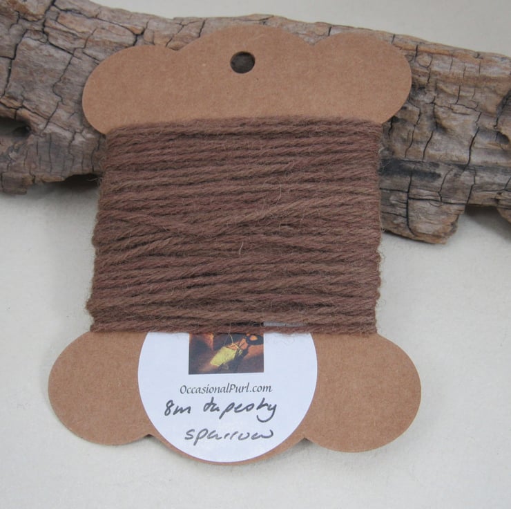 Hand dyed pure wool tapestry thread, dyed with natural hibiscus flowers to give a soft sparrow brown