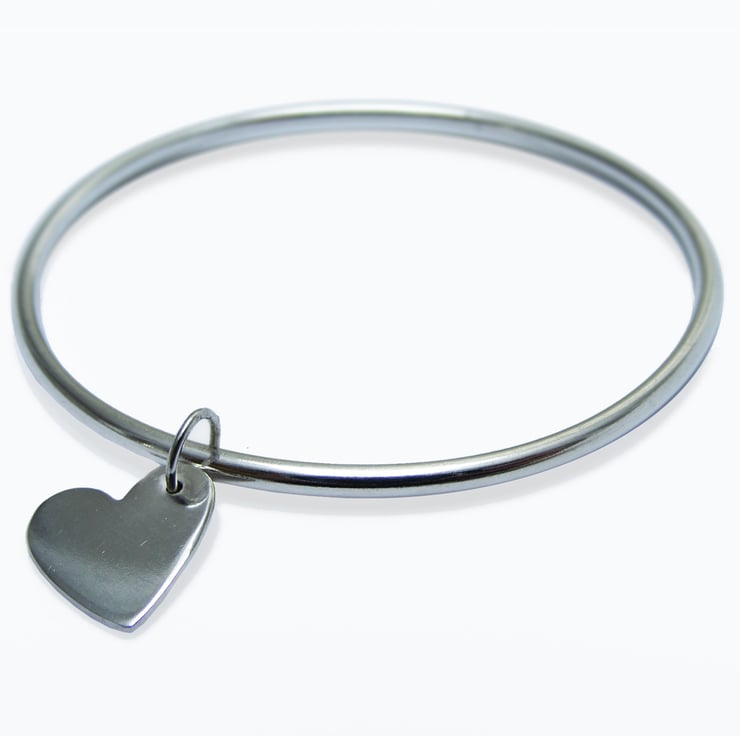 This simple contemporary bangle with a small heart charm has become a favourite design suitable for Wedding Jewellery, Anniversary Presents or simply to express your love for someone.