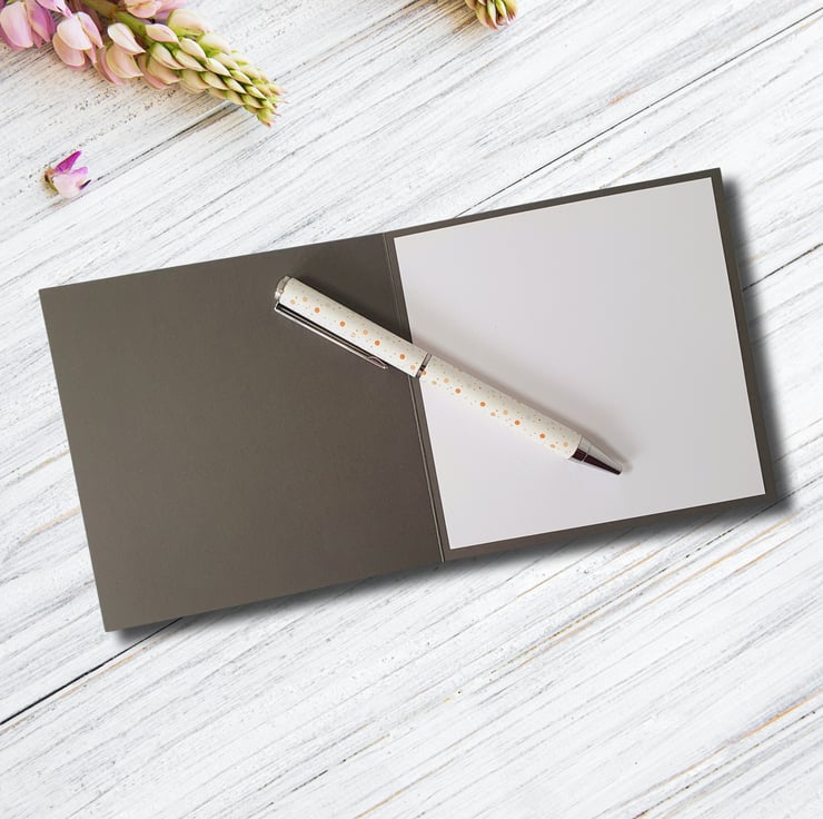 A small, handmade greeting card suitable for any occasion you would like to tell someone that they are in your thoughts.