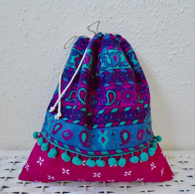 A lovely Drawstring bag , ideal for storing small craft projects / gift bag / bits & bobs