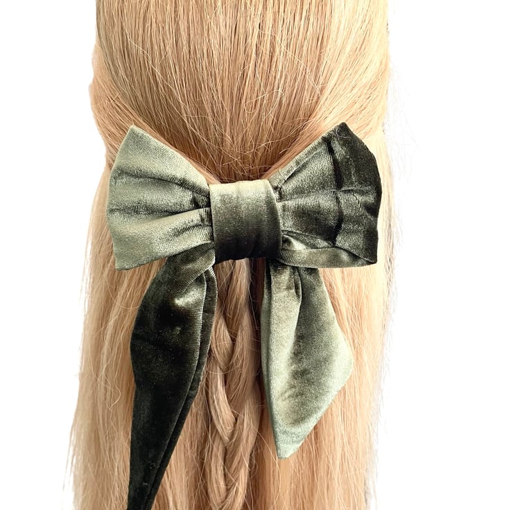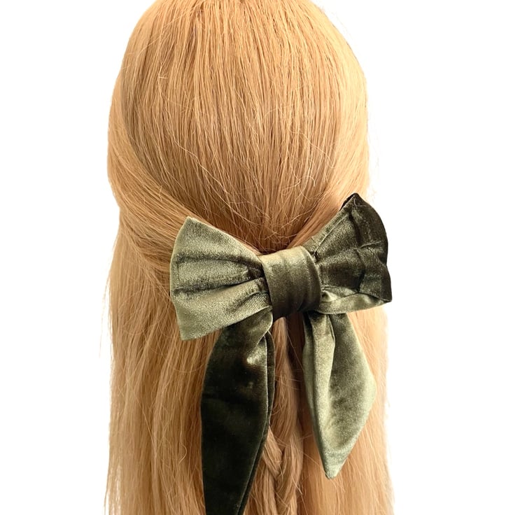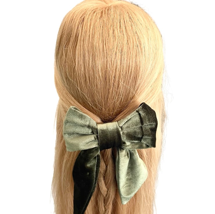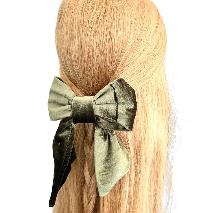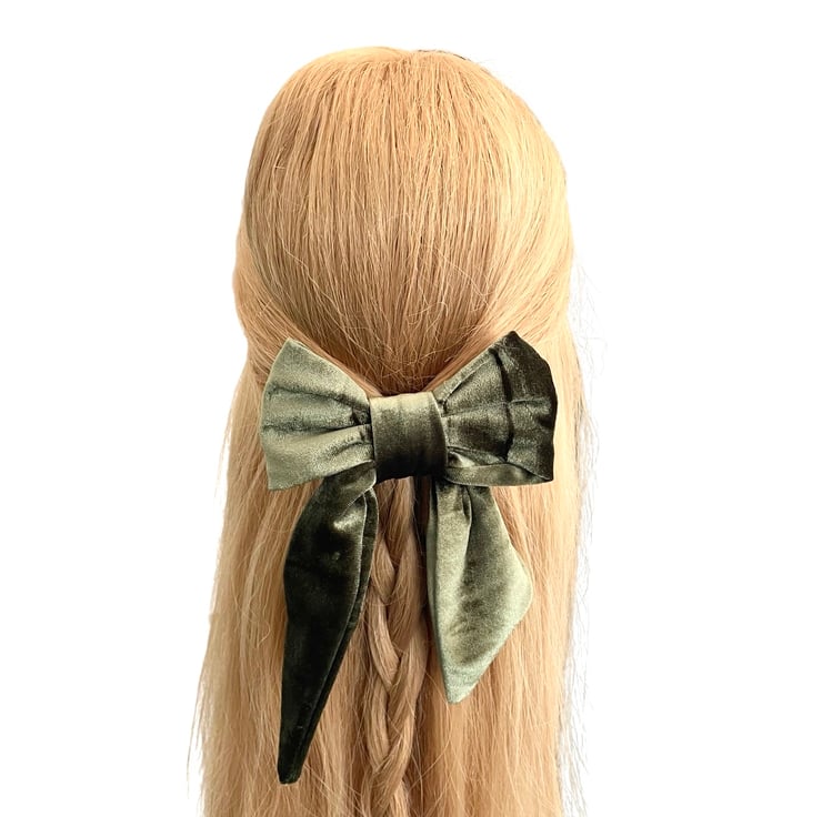 Luxury olive green velvet hair bow barrette clip for women