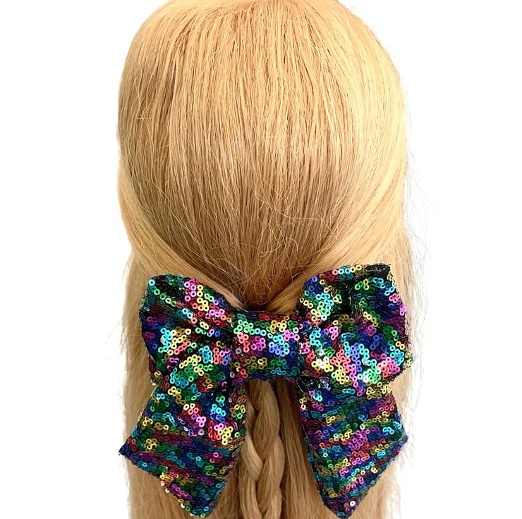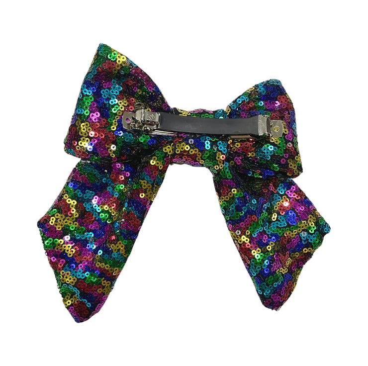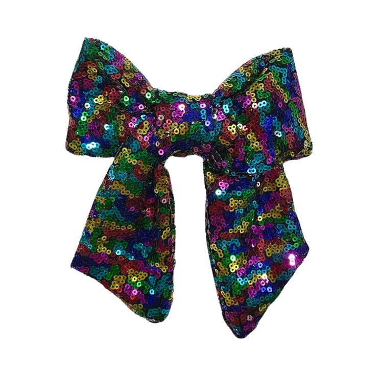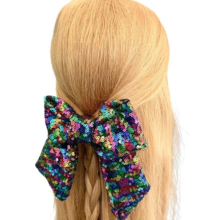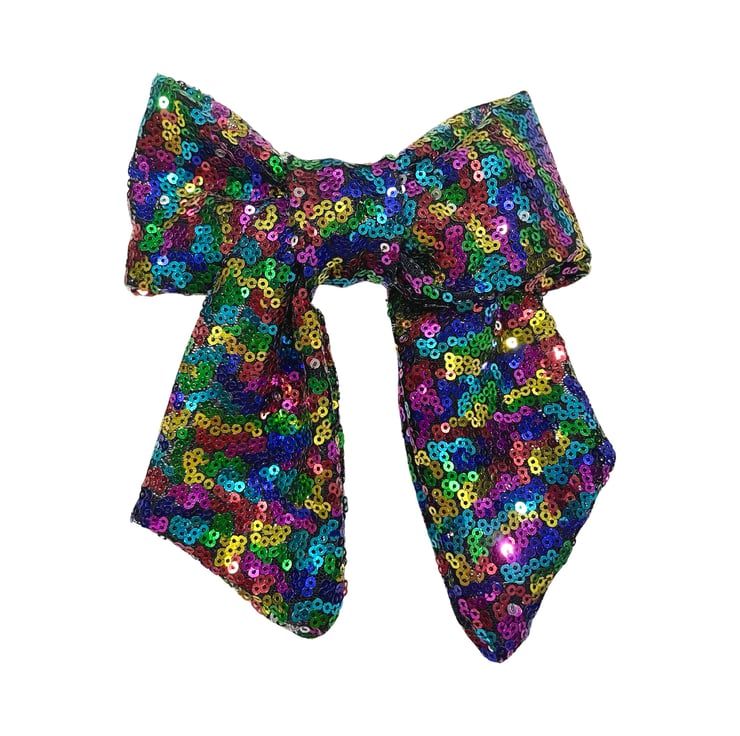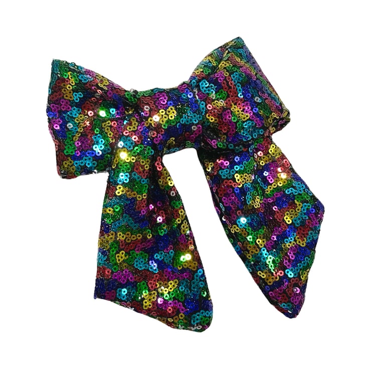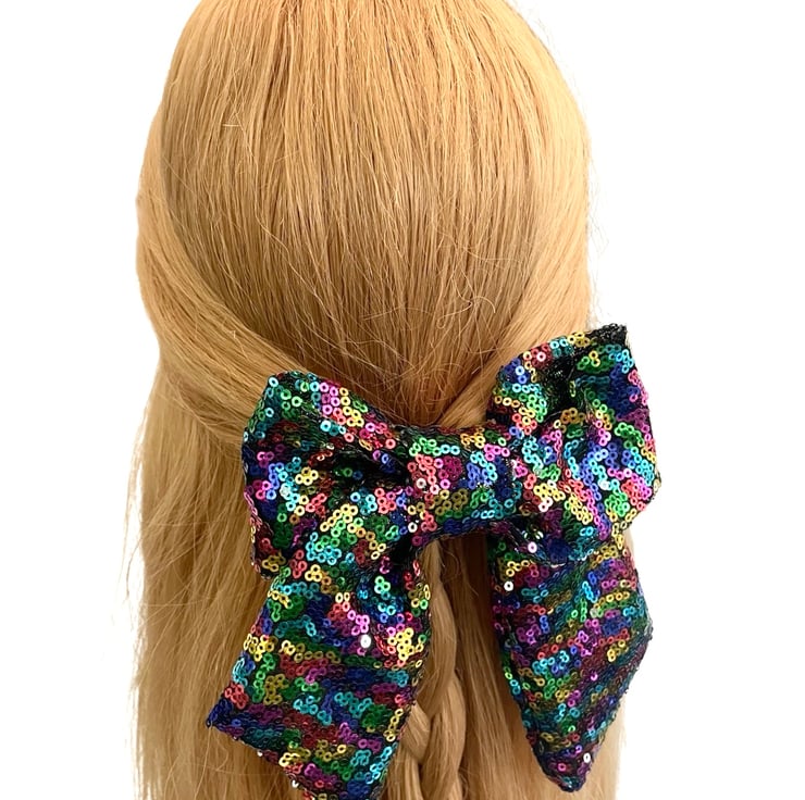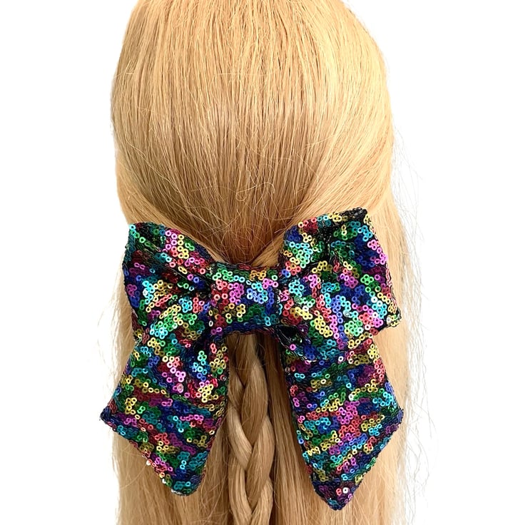 Rainbow sequin hair bow barrette clip for women Oversized long tail hair bow