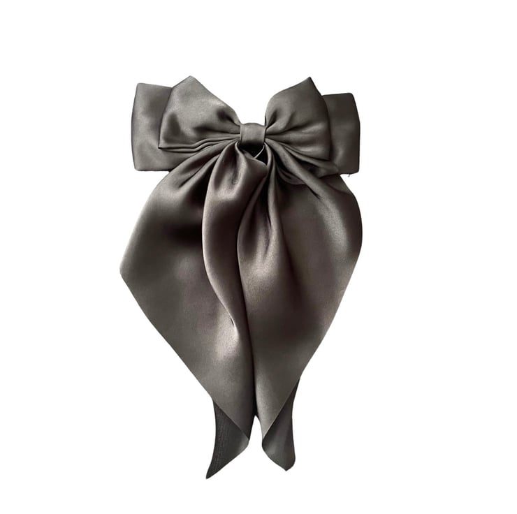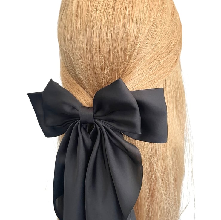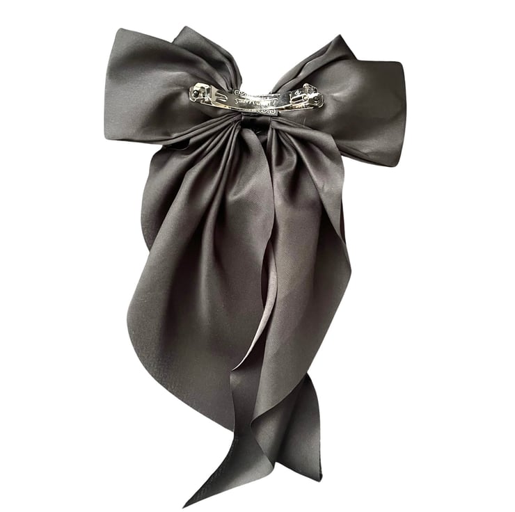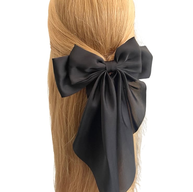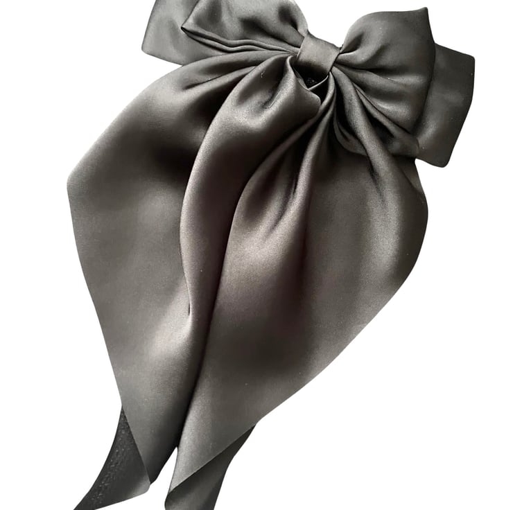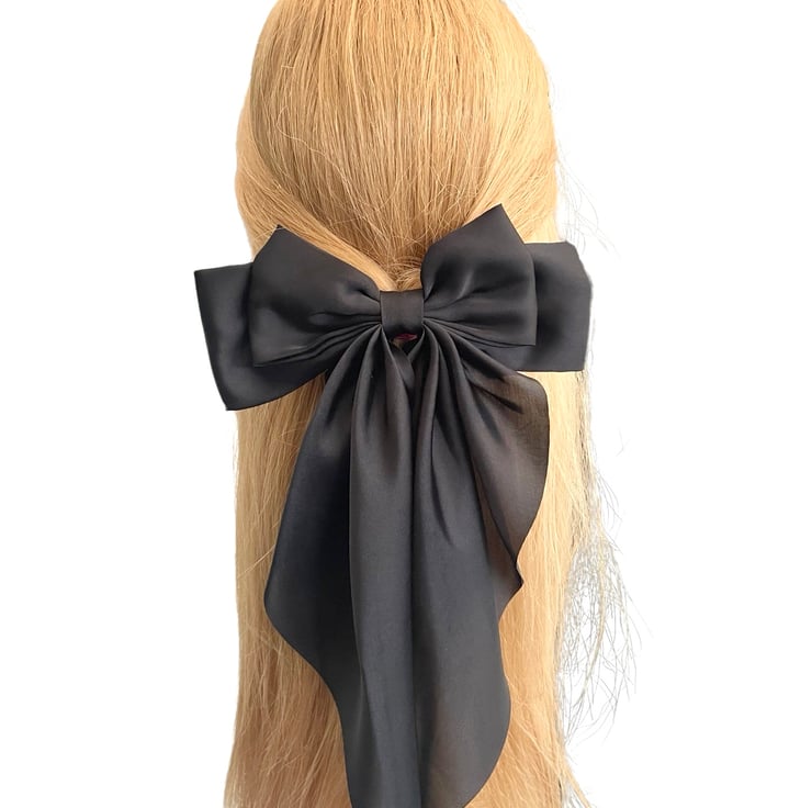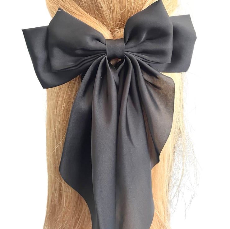 Black oversized long tail satin hair bow barrette clip for women