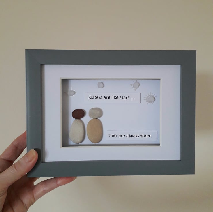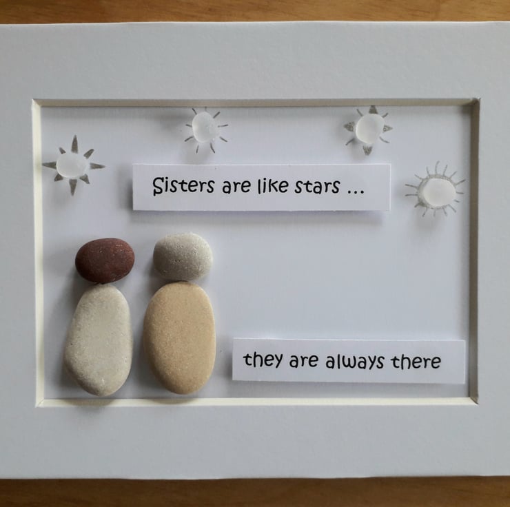 Unique gift of genuine sea glass and pebbles - "Sisters are like stars... they are always there'' a gorgeously cute gift for your sister! The beach finds are hand picked by me from Seaham, England. What you see is what you will receive.