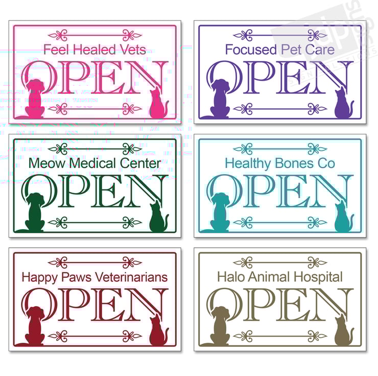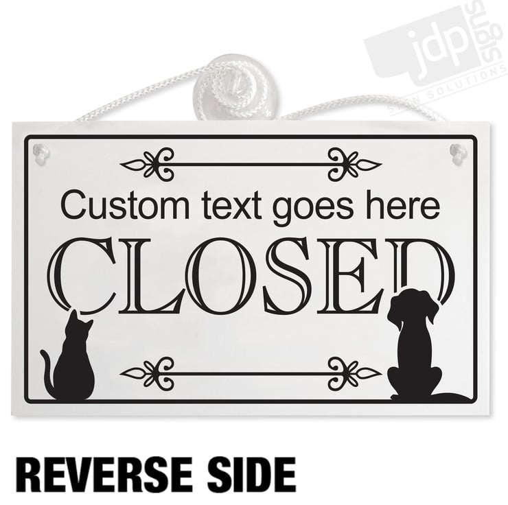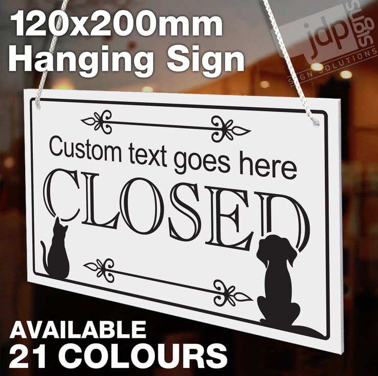 PERSONALISED VETS CUSTOM MADE OPEN CLOSED HANGING SIGN, SHOP WINDOW/DOOR - 21 COLOURS
