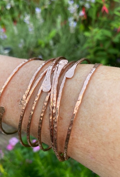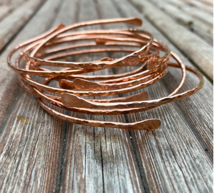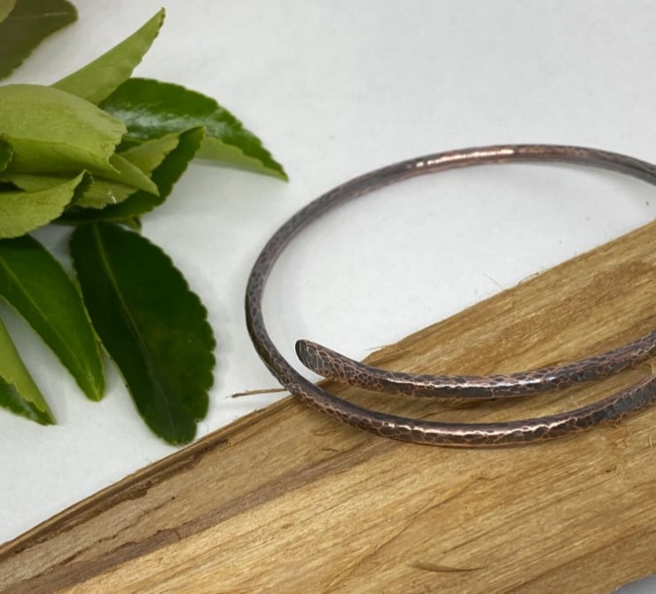Handmade, hand-forged, copper bangle bracelet, hammered copper brancelet, made to size/order using 2mm thick (gauge 12) natural 100% copper wire